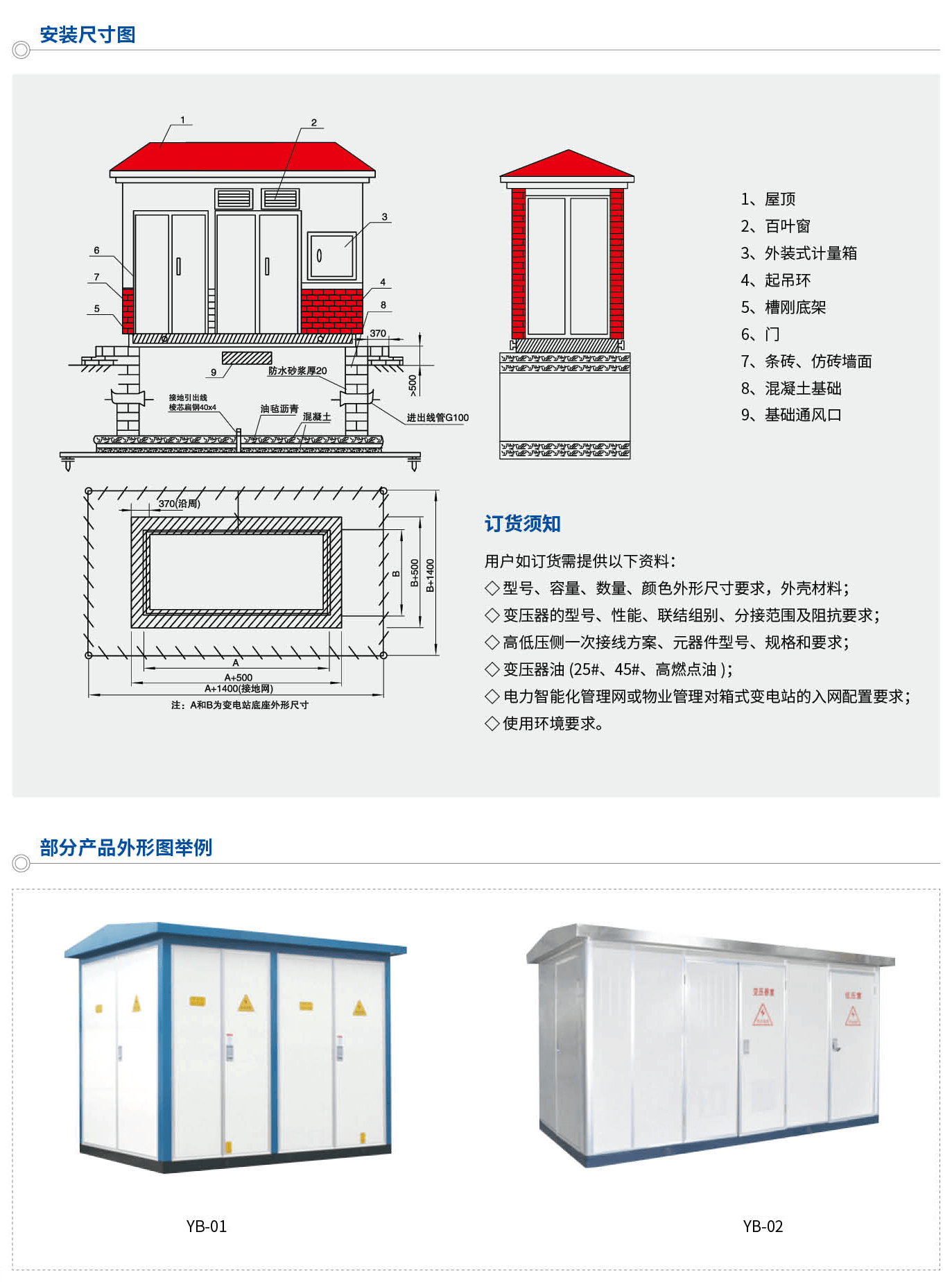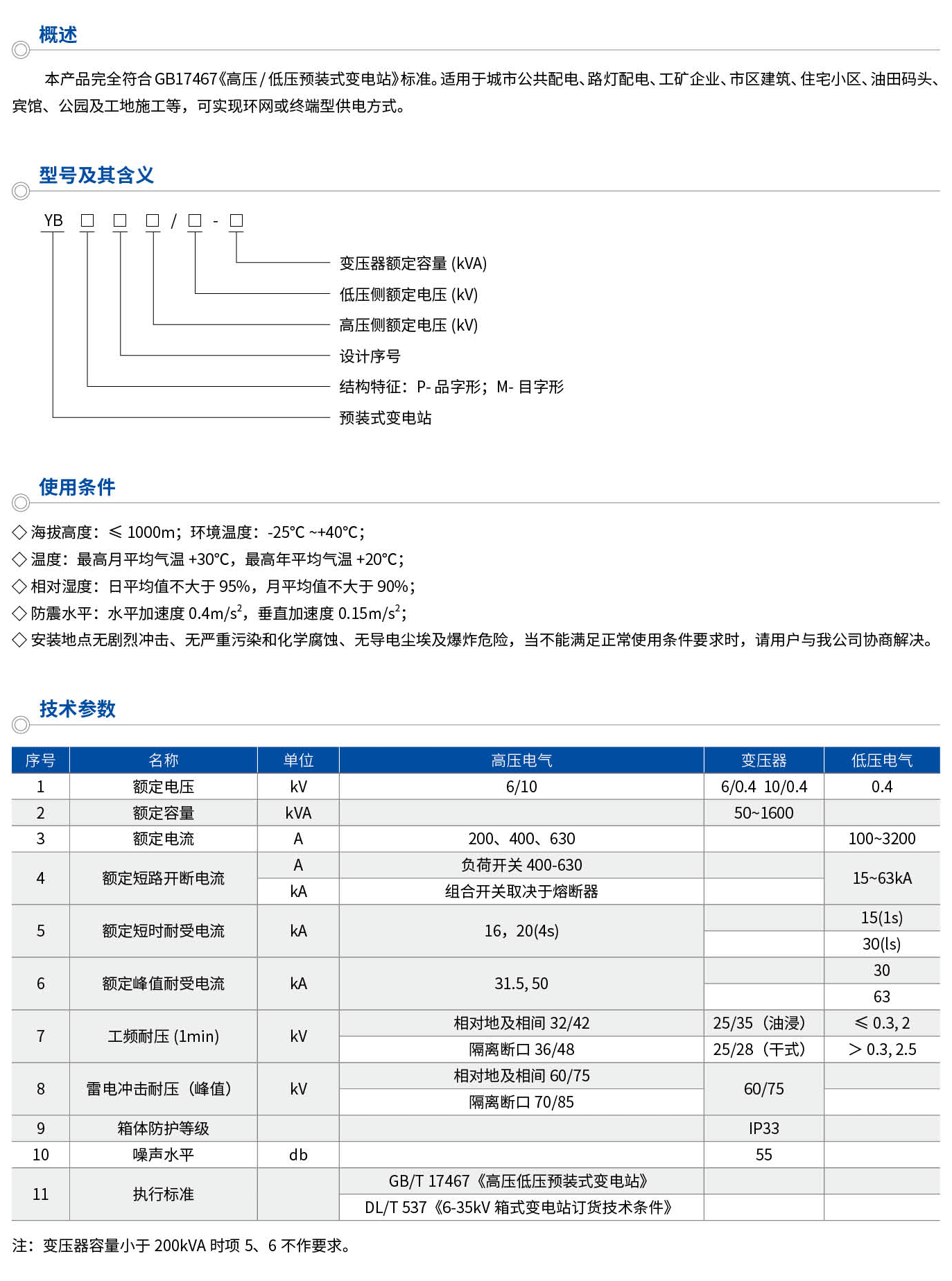 本产品完全符合GB17467《高压/低压预装式变电站》标准。适用于城市公共配电、路灯配电、工矿企业、市区建筑、住宅小区、油田码头、宾馆、公园及工地施工等,可实现环网或终端型供电方式。