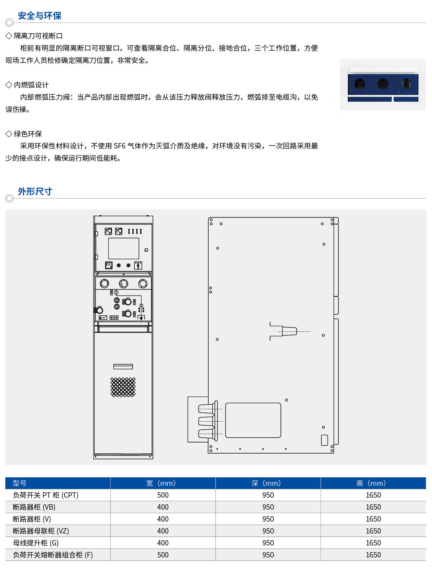 GTXGN-12/630-20固体绝缘环网柜(固体柜)是一种全绝缘、全密封、免维护的固体绝缘真空开关设备。所有高压带电部分均用绝缘性能优良的环氧树脂材料浇注成型,将真空灭弧室、主导电回路、绝缘支撑等有机结合为一整体,功能单元通过全绝缘固体汇流母线连接。因此,整个开关设备不受外部环境影响,可确保设备运行的可靠性和操作人员的安全性。该环网柜具有结构简单、操作灵话、联锁可靠、安装方便等特点,适用于50Hz,12千伏的电力系统,广泛应用于工业及民用电缆环网及配网终端工程,作为电能的接受和分配之用,特别适用于城市居民区配电、小型变电站、开闭所、电缆分支箱、箱式变电站、工矿企业、商场、机场、地铁、风力发电、医院、体育场、铁路、隧道等场所使用。由于该产品具有全绝缘、全密封、全屏蔽的优点,所以特别适用···